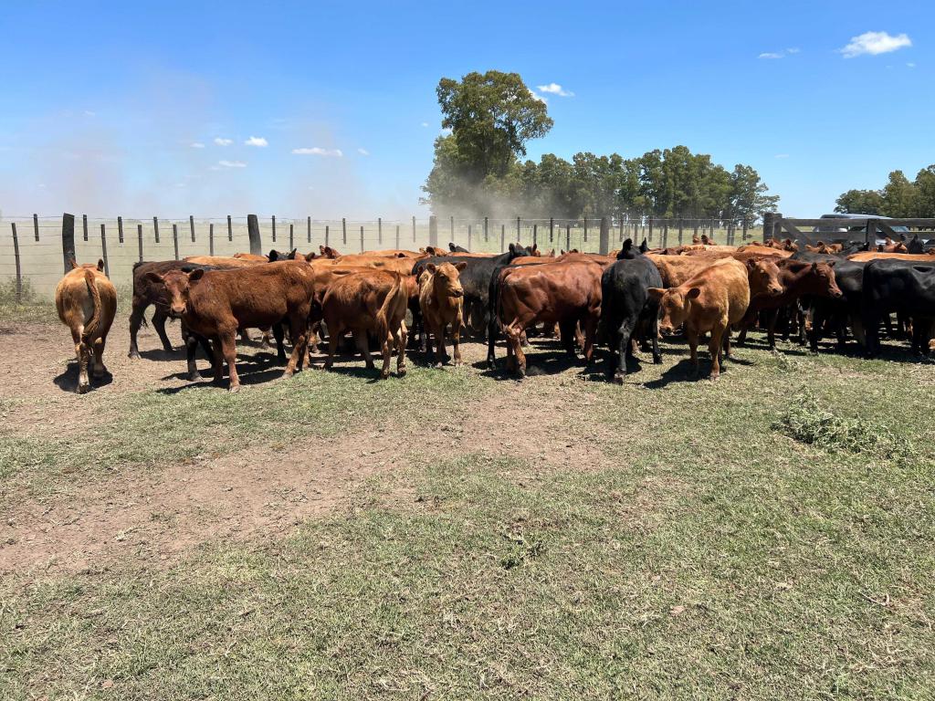 23 Negros y 42 Colorados. 2 con cuernos. 2 con querato curado. Hijos de Toros PC Limangus. Los terneros fueron encerrados a primera hora y las fotos y videos se tomaron al medio día.