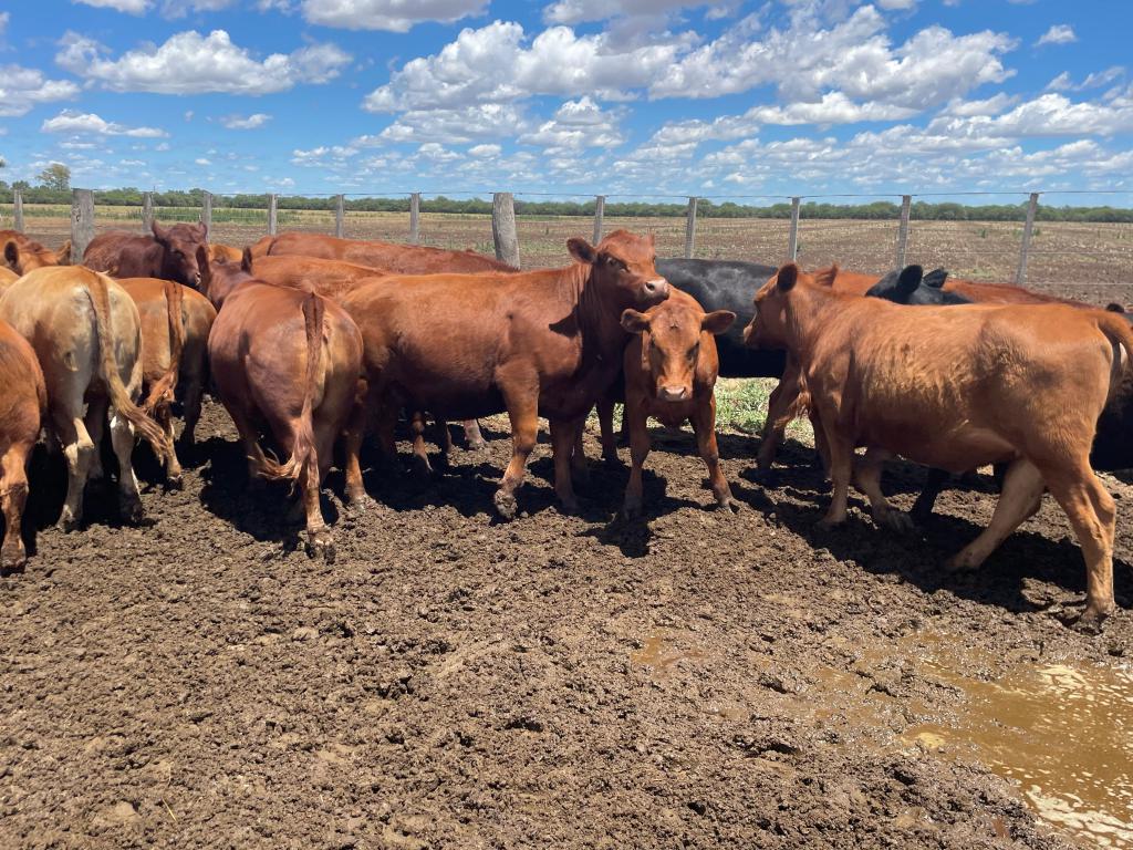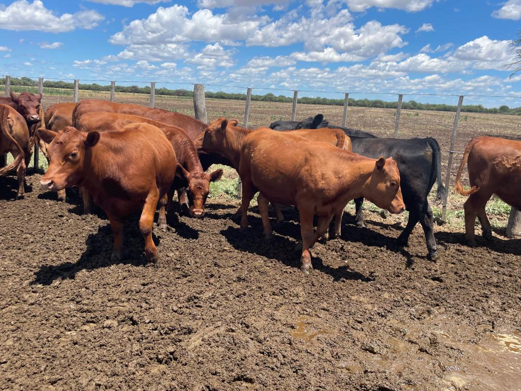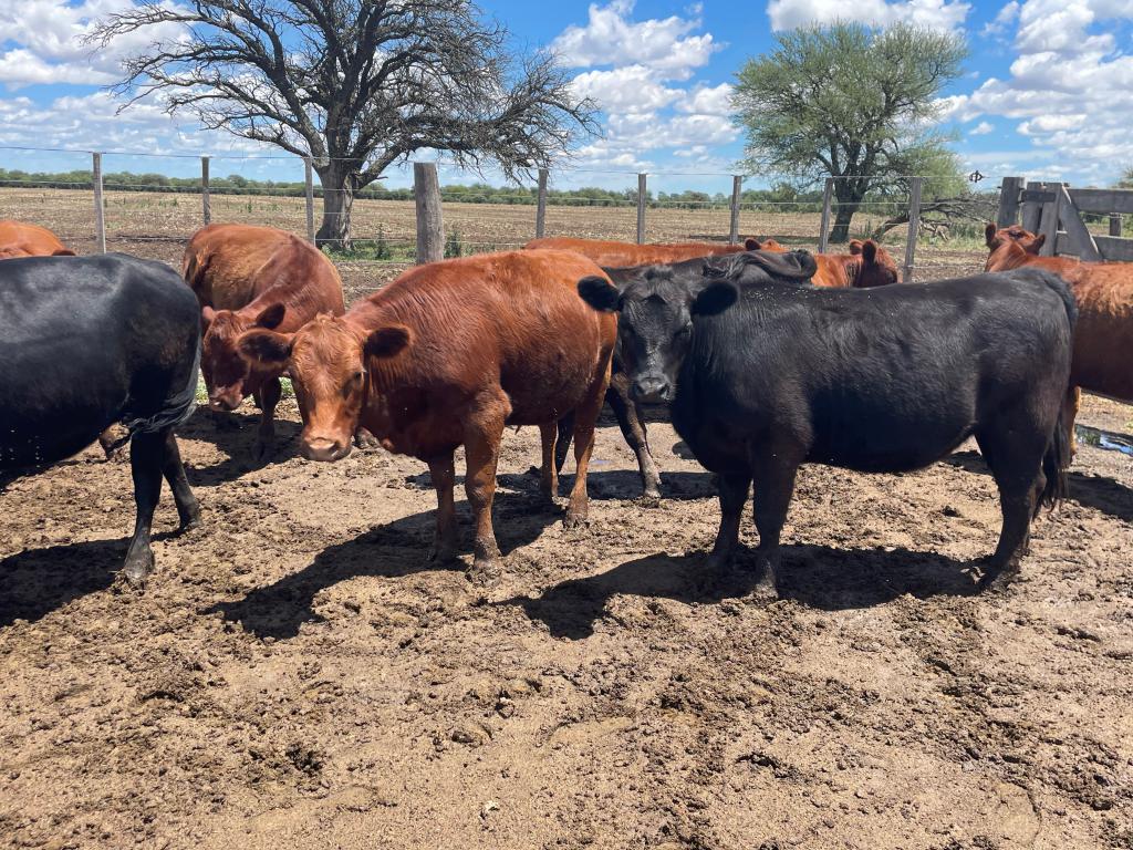 Angus Colorado (compradas y recriadas) Limangus coloradas y negras (marca liquida) Hay una con cuernos. Hay un par panza blanca.